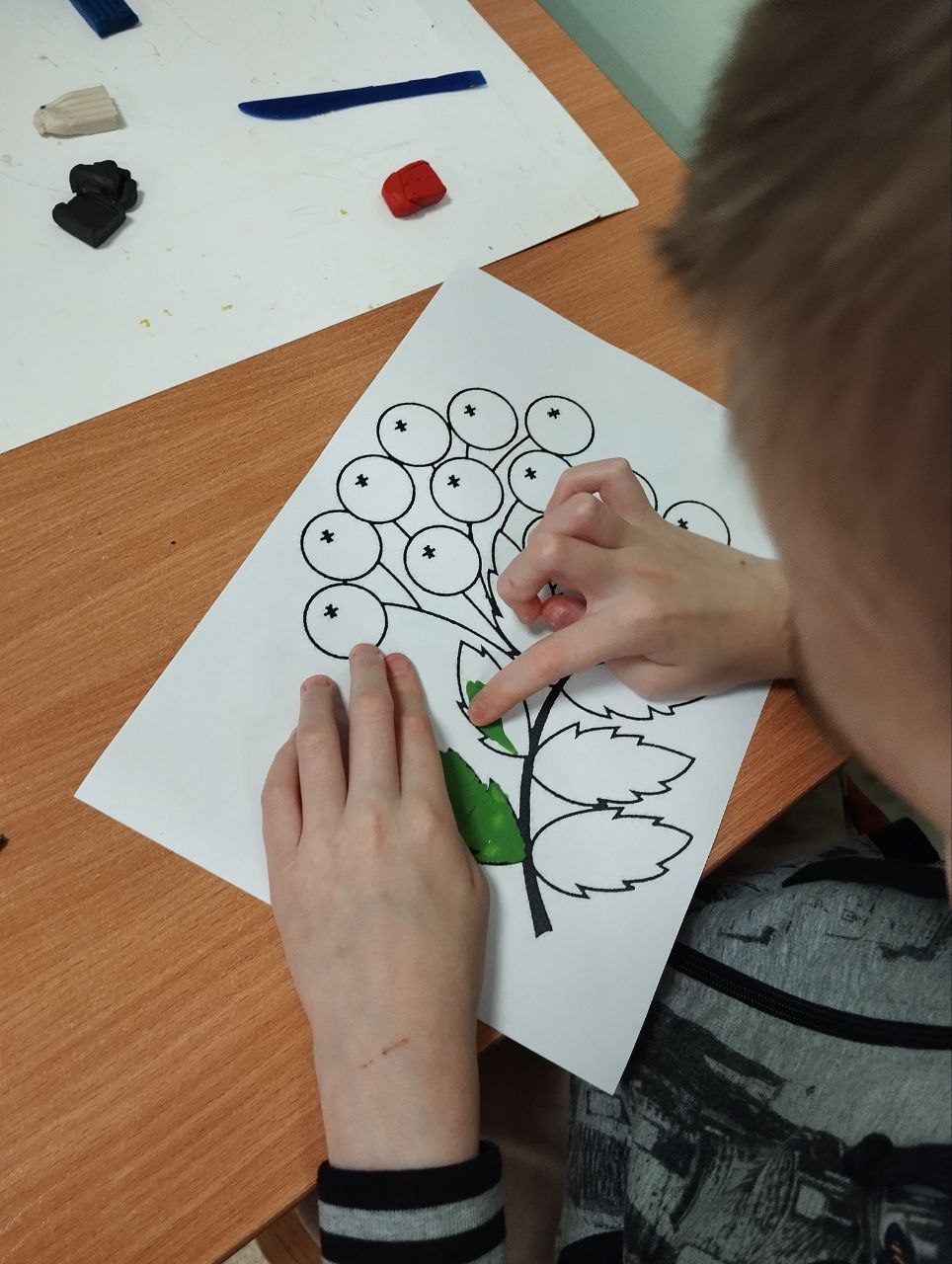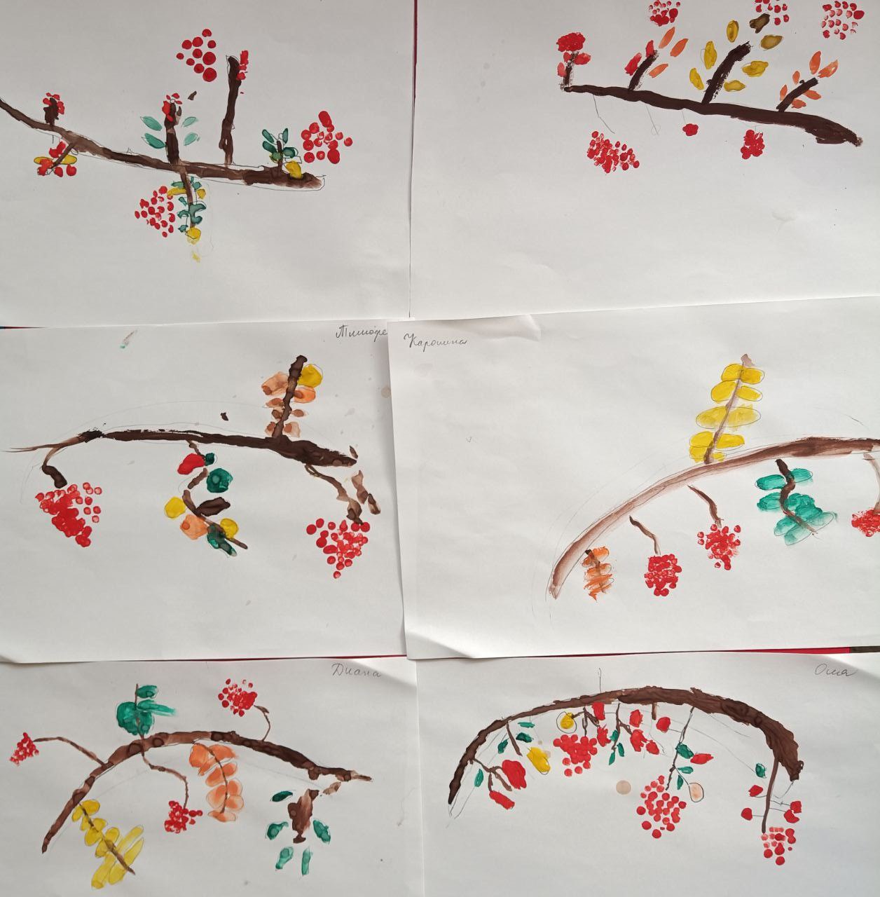 Воспитанники двух групп центра "Луч" выполнили работу "Рябина" в разных техниках: