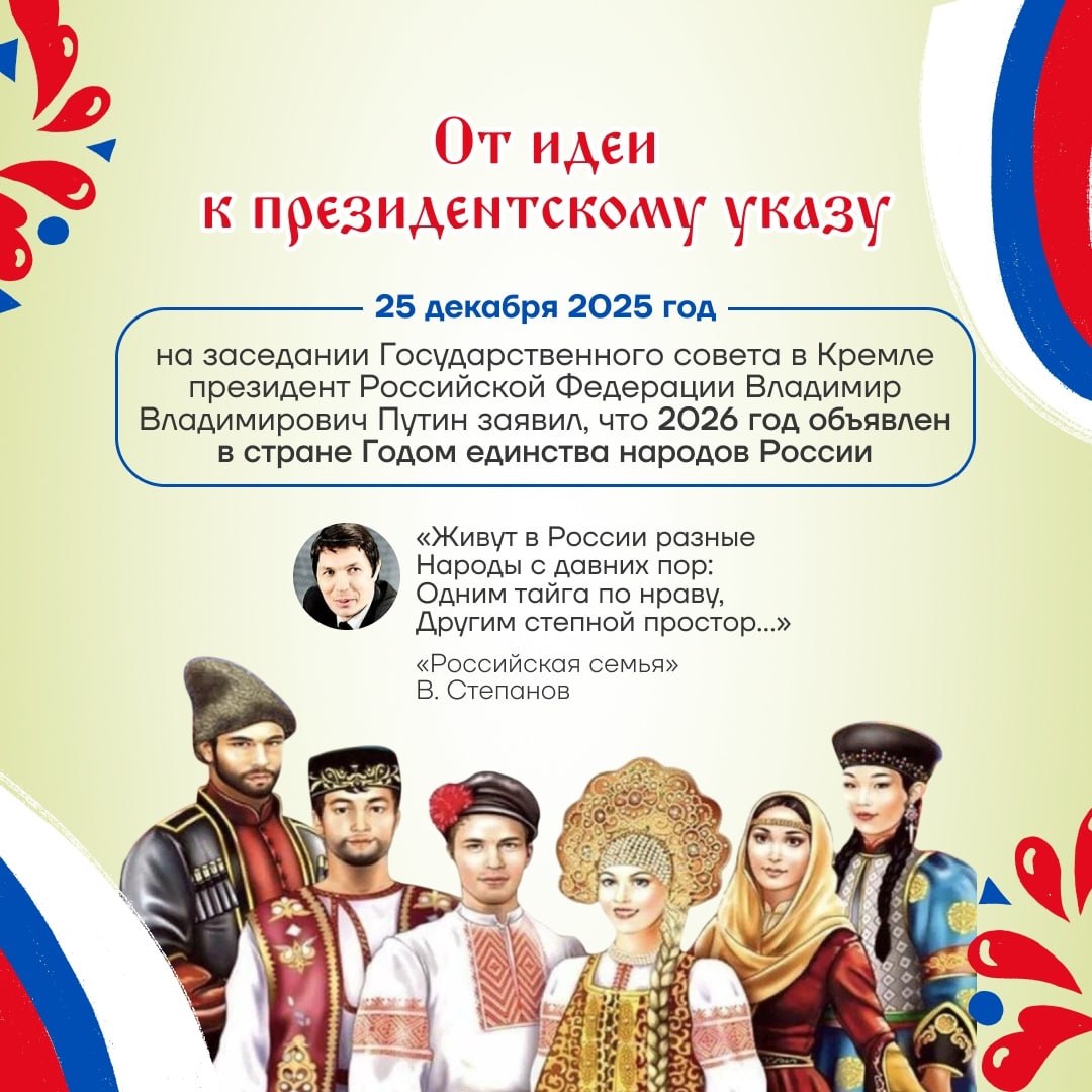 2026 год официально объявлен в России Годом единства народов!