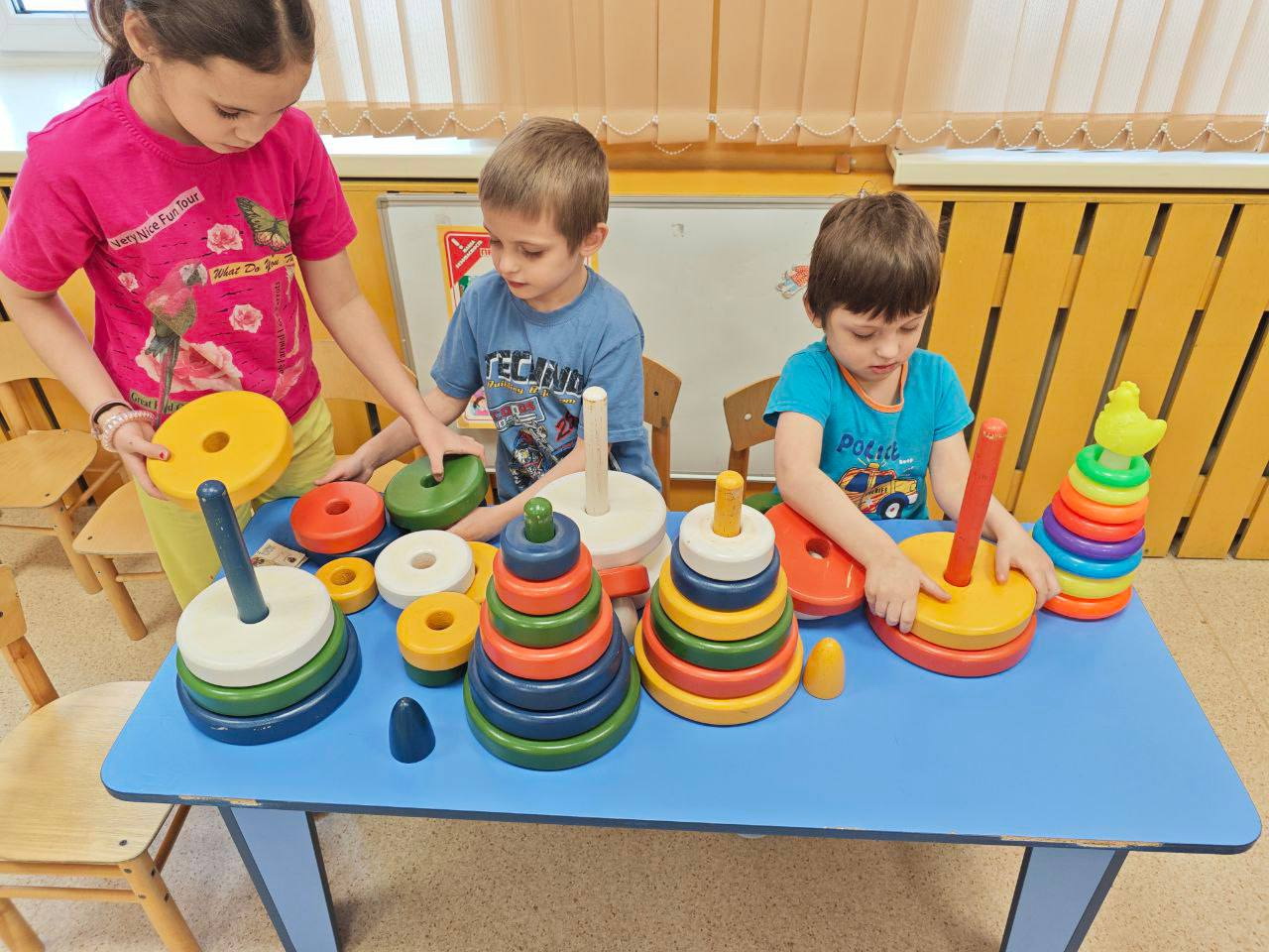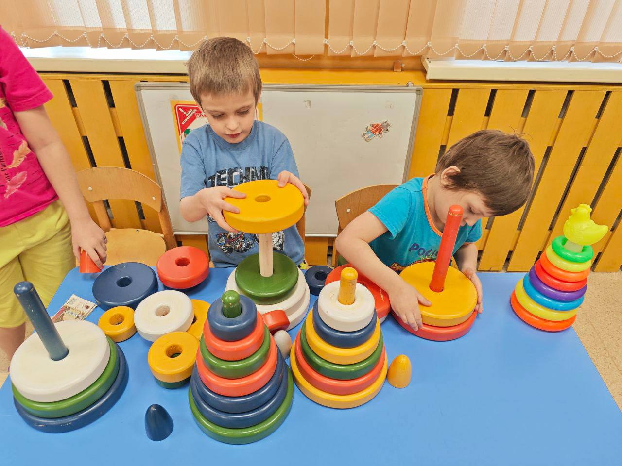 Педагоги организовали игры, направленные на развитие мелкой моторики, восприятие цвета, формы, размера.