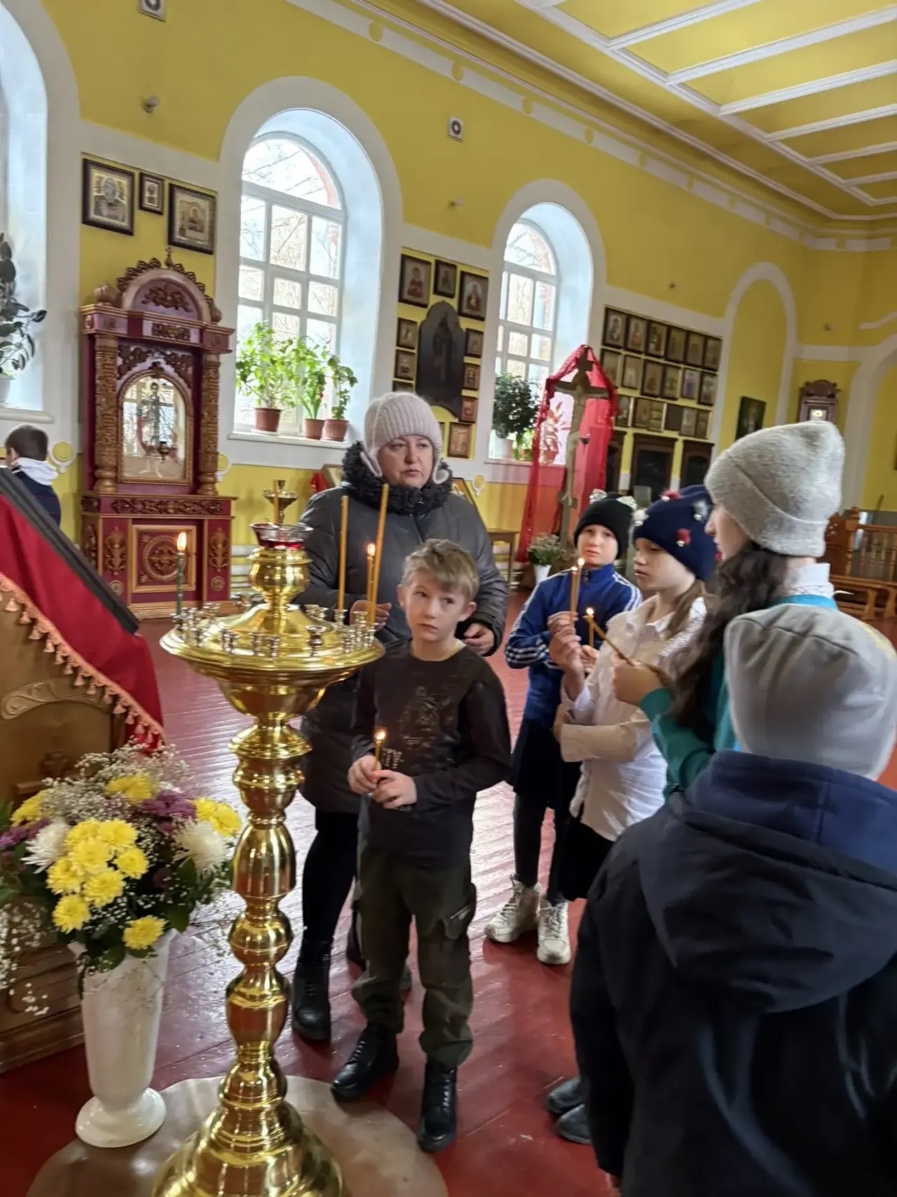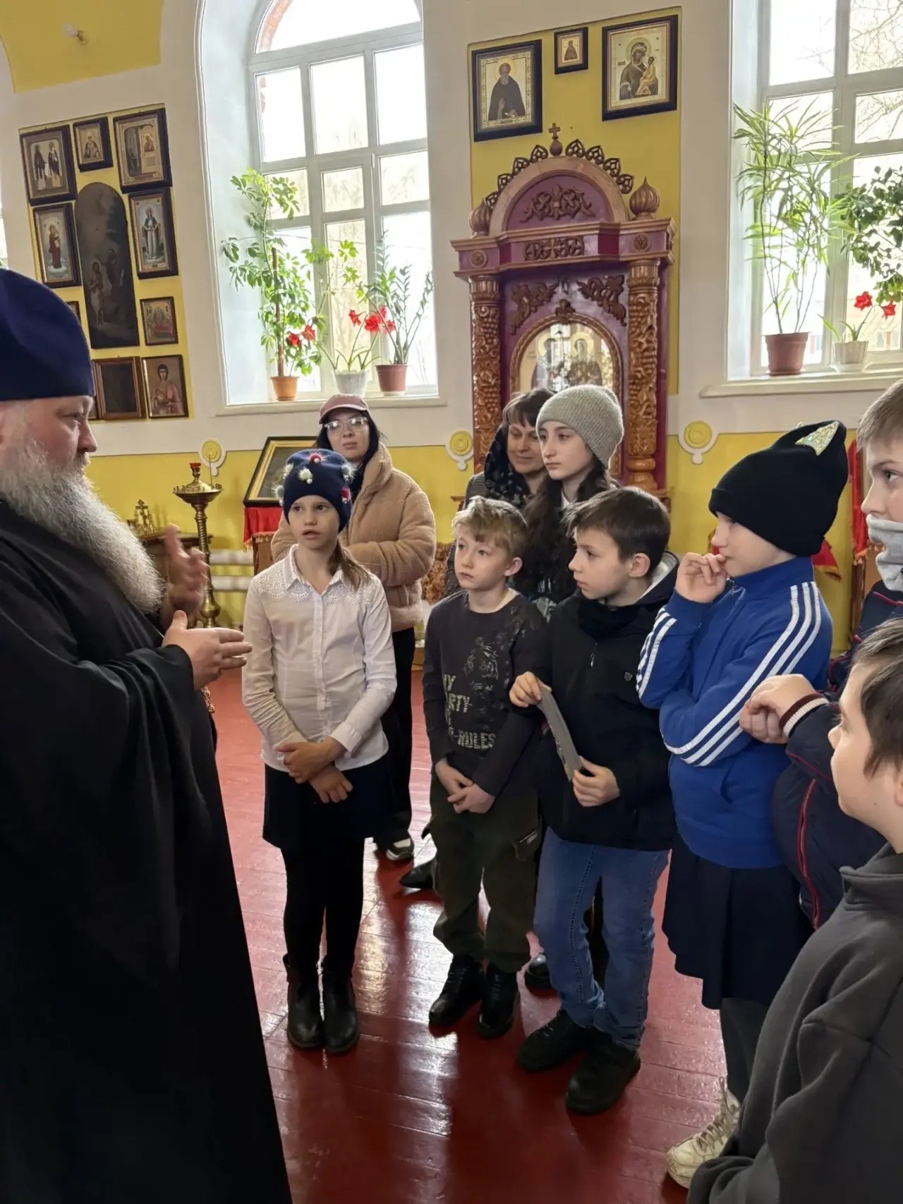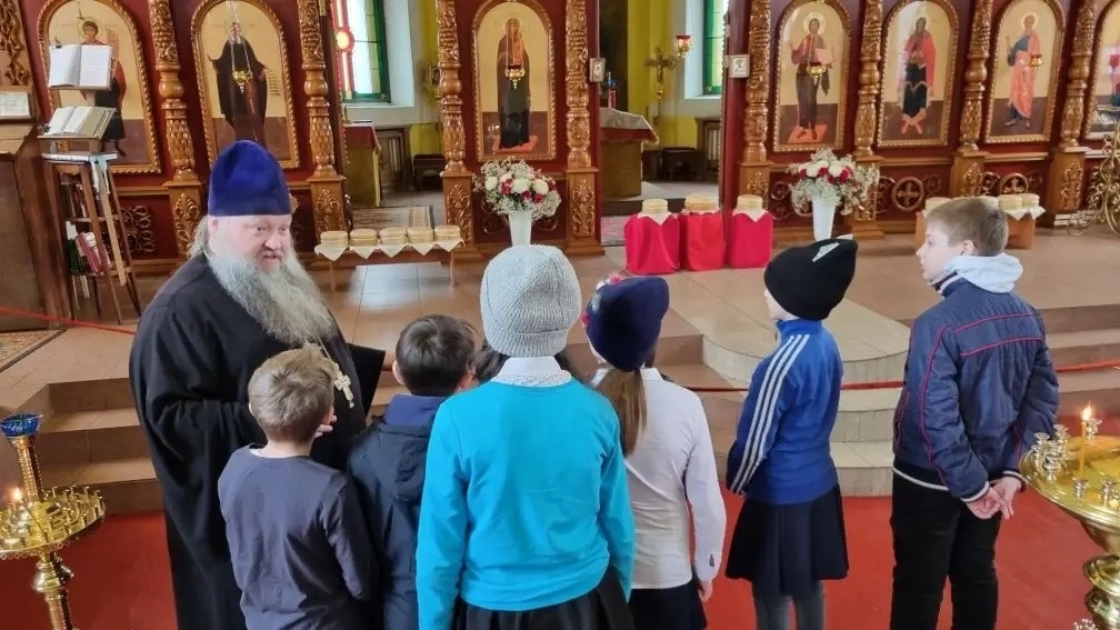 На встрече в храме дети смогли не только увидеть свои работы, представленные на выставке, но и услышать трогательные слова наставления от отца Андрея.