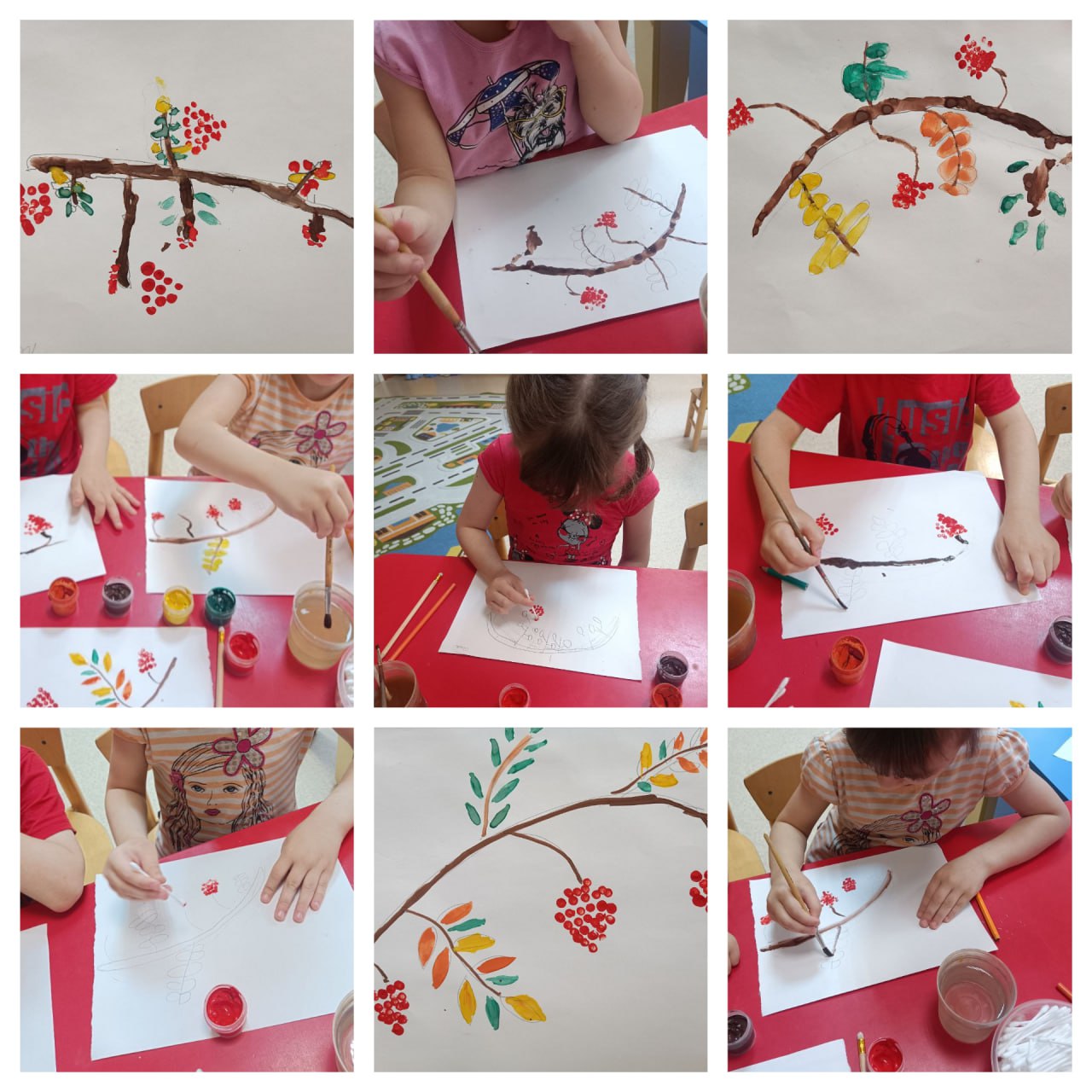 Воспитанники двух групп центра "Луч" выполнили работу "Рябина" в разных техниках: