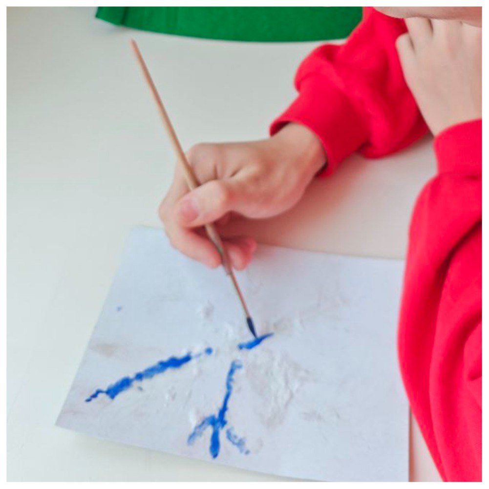 Краска: Кисточку обмакивают в сильно разведенную водой акварель или гуашь и слегка касаются соляного контура.