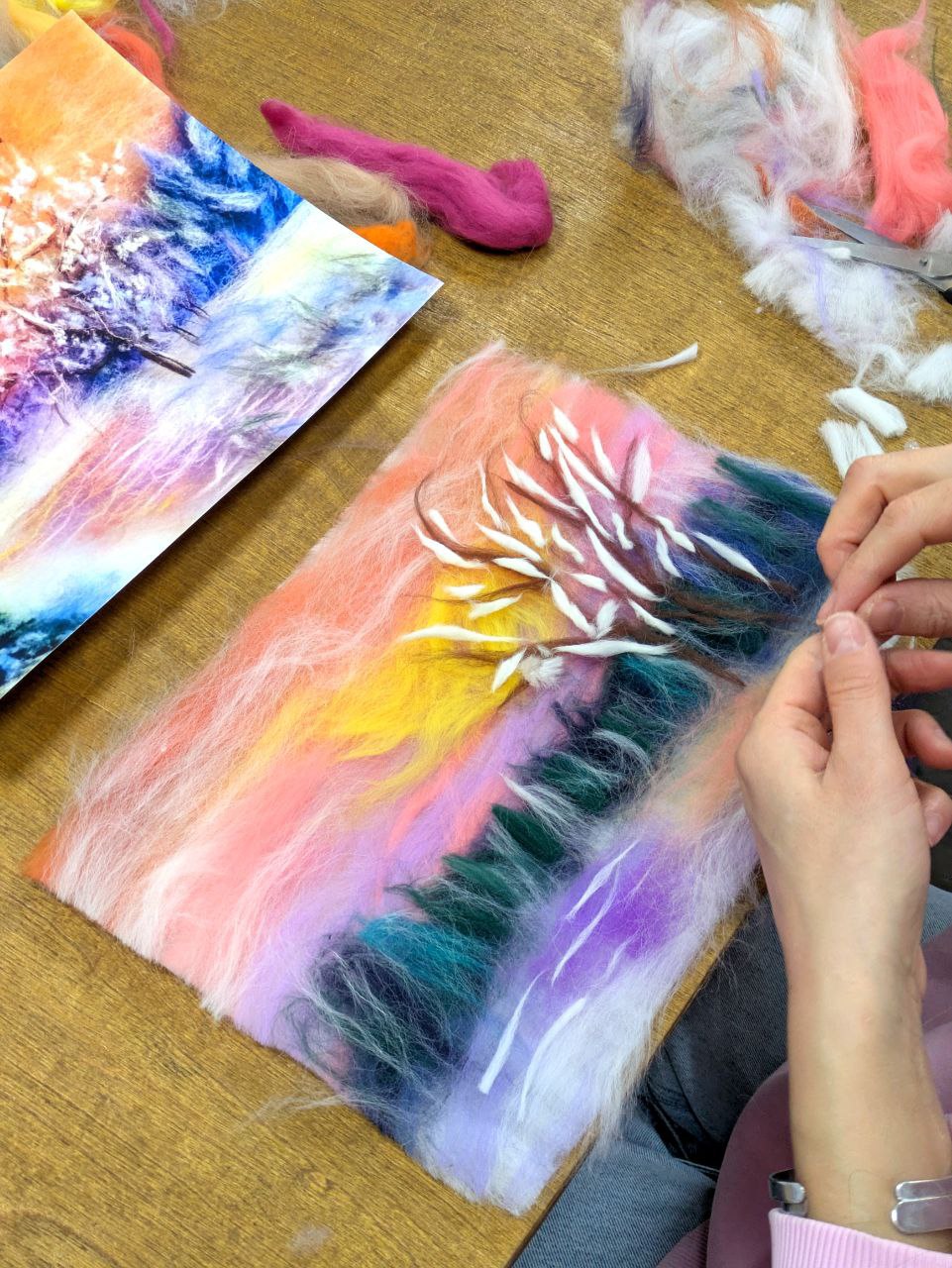 Мы в восторге от полученных результатов! Картины, выполненные шерстью, получились яркими, фактурными и удивительно теплыми.